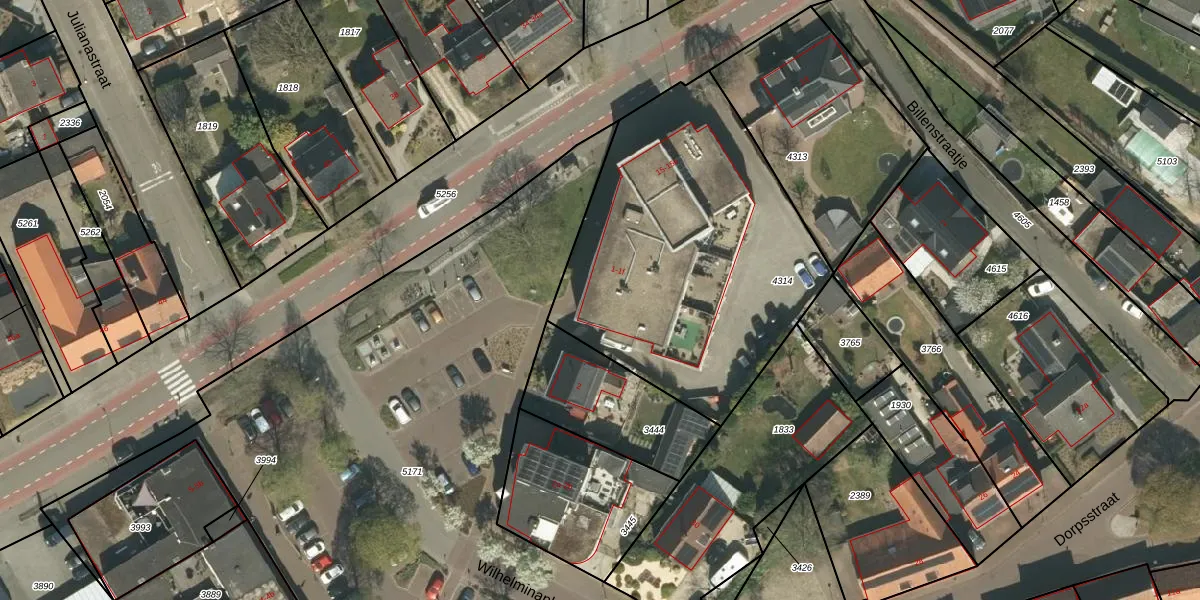 Het perceel waarop Wilhelminaplein 1-f staat heeft een oppervlakte van 1700 m². Dit is een zeer groot perceel. De perceeloppervlakte wordt geregistreerd door het Kadaster. Gedetailleerde informatie over de maten van dit perceel kunt u vinden in het rapport Kadastrale kaart met maatvoering van Wilhelminaplein 1-f.