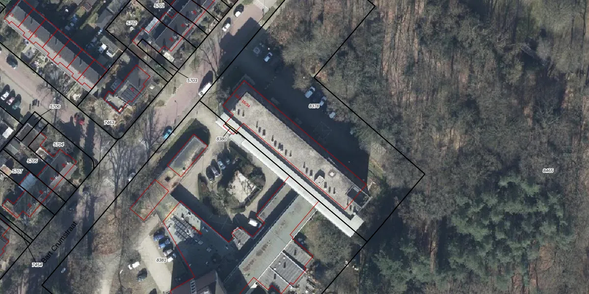 Het perceel waarop Bart Crumstraat 16-14 staat heeft een oppervlakte van 3090 m². Dit is een zeer groot perceel. De perceeloppervlakte wordt geregistreerd door het Kadaster. Gedetailleerde informatie over de maten van dit perceel kunt u vinden in het rapport Kadastrale kaart met maatvoering van Bart Crumstraat 16-14.