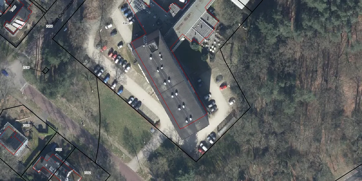 Het perceel waarop het adres ligt is RKM00-C-8381. De afkorting 'RKM00' staat voor kadastrale gemeente Renkum. De oppervlakte van het perceel is 7725 m². Dat is groter dan gemiddeld in Renkum, waar de gemiddelde perceeloppervlakte op 2445,57 m² ligt. Het grootste perceel in de kadastrale gemeente is 35,2 ha. Het kleinste perceel heeft een oppervlakte van 0 m². Op het perceel liggen in totaal 98 adressen. De laatste wijziging in het de Basisregistratie Kadaster (BRK) was op 02-12-2019.