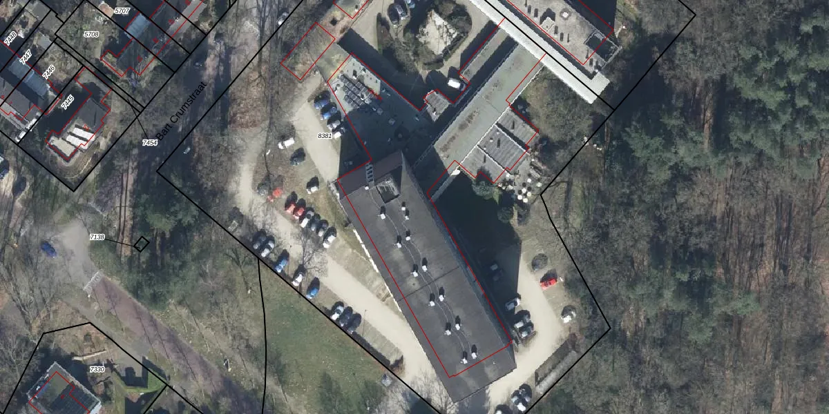 Het perceel waarop Bart Crumstraat 18-38 staat heeft een oppervlakte van 7725 m². Dit is een zeer groot perceel. De perceeloppervlakte wordt geregistreerd door het Kadaster. Gedetailleerde informatie over de maten van dit perceel kunt u vinden in het rapport Kadastrale kaart met maatvoering van Bart Crumstraat 18-38.