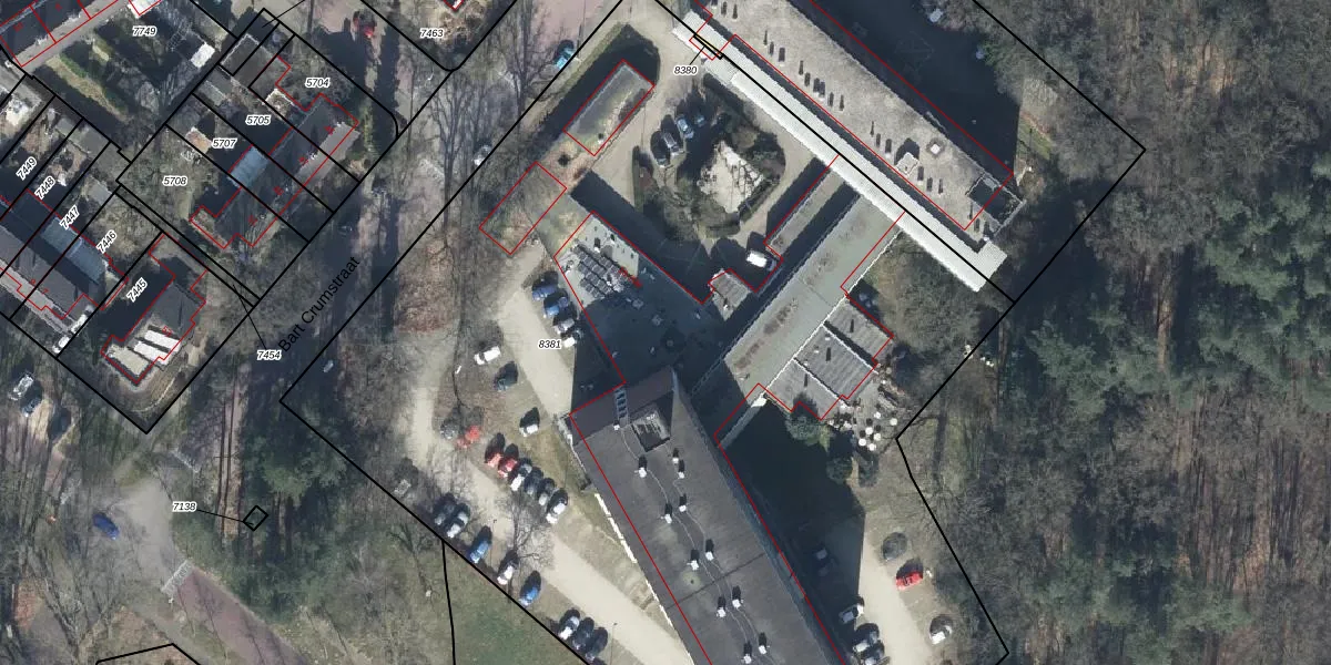 Het perceel waarop Bart Crumstraat 18-49 staat heeft een oppervlakte van 7725 m². Dit is een zeer groot perceel. De perceeloppervlakte wordt geregistreerd door het Kadaster. Gedetailleerde informatie over de maten van dit perceel kunt u vinden in het rapport Kadastrale kaart met maatvoering van Bart Crumstraat 18-49.