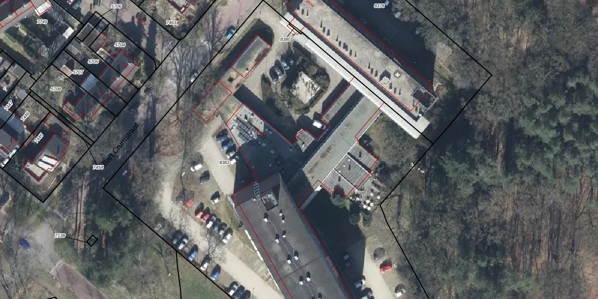 Het perceel waarop Bart Crumstraat 18-57 staat heeft een oppervlakte van 7725 m². Dit is een zeer groot perceel. De perceeloppervlakte wordt geregistreerd door het Kadaster. Gedetailleerde informatie over de maten van dit perceel kunt u vinden in het rapport Kadastrale kaart met maatvoering van Bart Crumstraat 18-57.