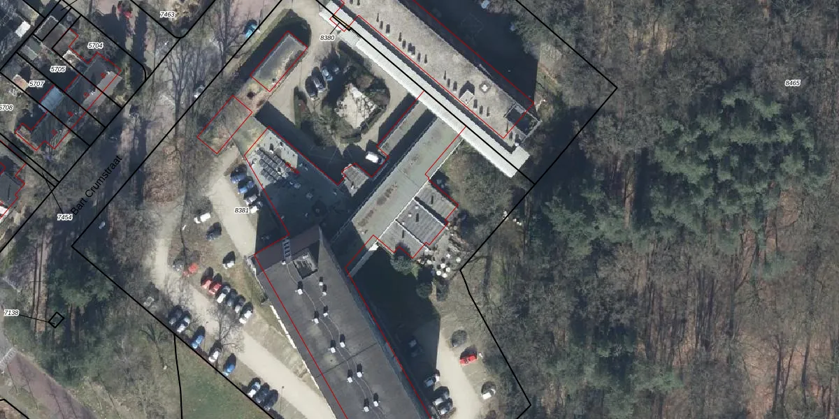 Het perceel waarop Bart Crumstraat 18-61 staat heeft een oppervlakte van 7725 m². Dit is een zeer groot perceel. De perceeloppervlakte wordt geregistreerd door het Kadaster. Gedetailleerde informatie over de maten van dit perceel kunt u vinden in het rapport Kadastrale kaart met maatvoering van Bart Crumstraat 18-61.