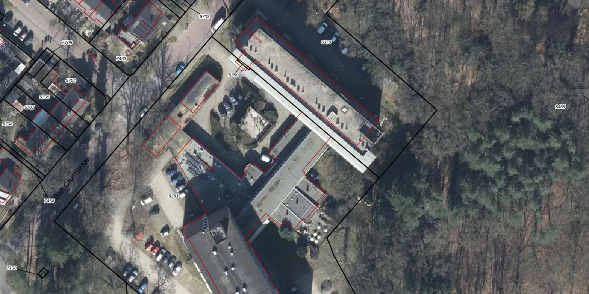 Het perceel waarop Bart Crumstraat 18-73 staat heeft een oppervlakte van 7725 m². Dit is een zeer groot perceel. De perceeloppervlakte wordt geregistreerd door het Kadaster. Gedetailleerde informatie over de maten van dit perceel kunt u vinden in het rapport Kadastrale kaart met maatvoering van Bart Crumstraat 18-73.