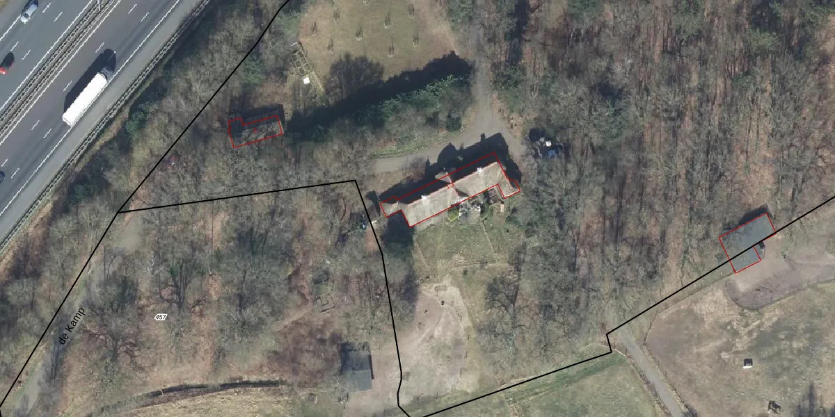 Het perceel waarop de Kamp 3 staat heeft een oppervlakte van 3,1 ha. Dit is een zeer groot perceel. De perceeloppervlakte wordt geregistreerd door het Kadaster. Gedetailleerde informatie over de maten van dit perceel kunt u vinden in het rapport Kadastrale kaart met maatvoering van de Kamp 3.