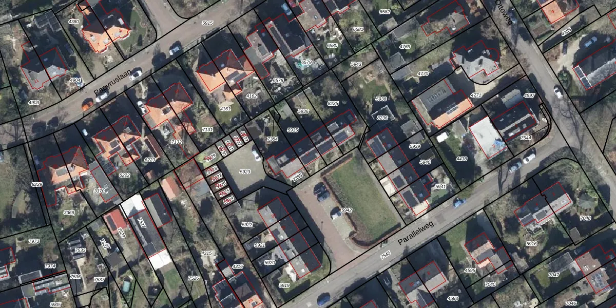 Gebruik de zoekbalk of klik op een perceel voor informatie over de adressen binnen dit perceel.