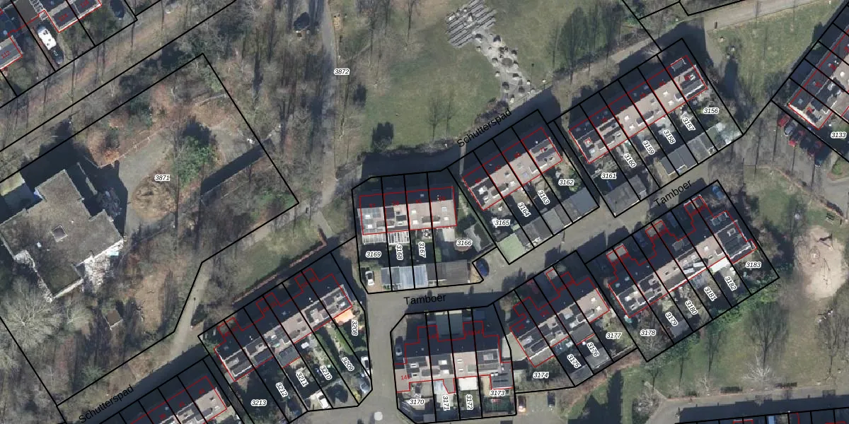 Gebruik de zoekbalk of klik op een perceel voor informatie over de adressen binnen dit perceel.