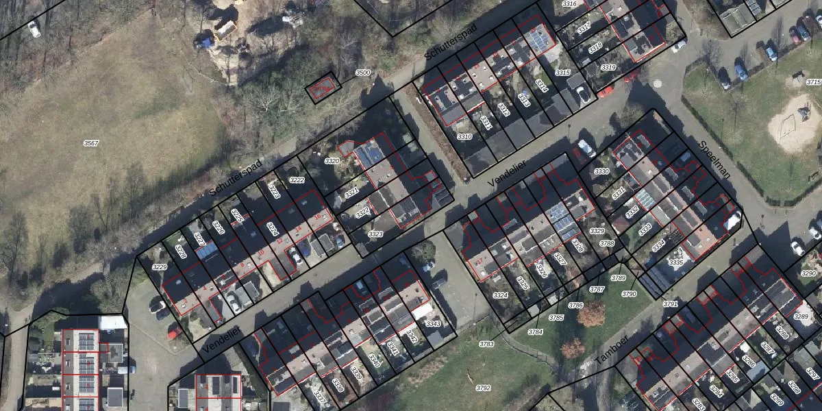 Gebruik de zoekbalk of klik op een perceel voor informatie over de adressen binnen dit perceel.
