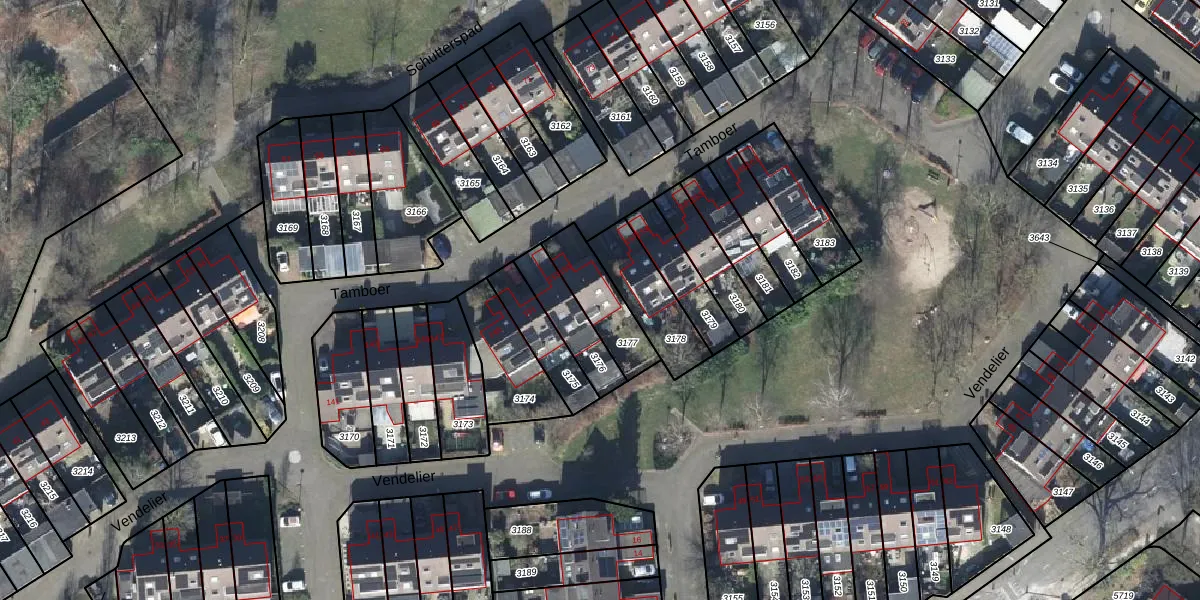 Gebruik de zoekbalk of klik op een perceel voor informatie over de adressen binnen dit perceel.