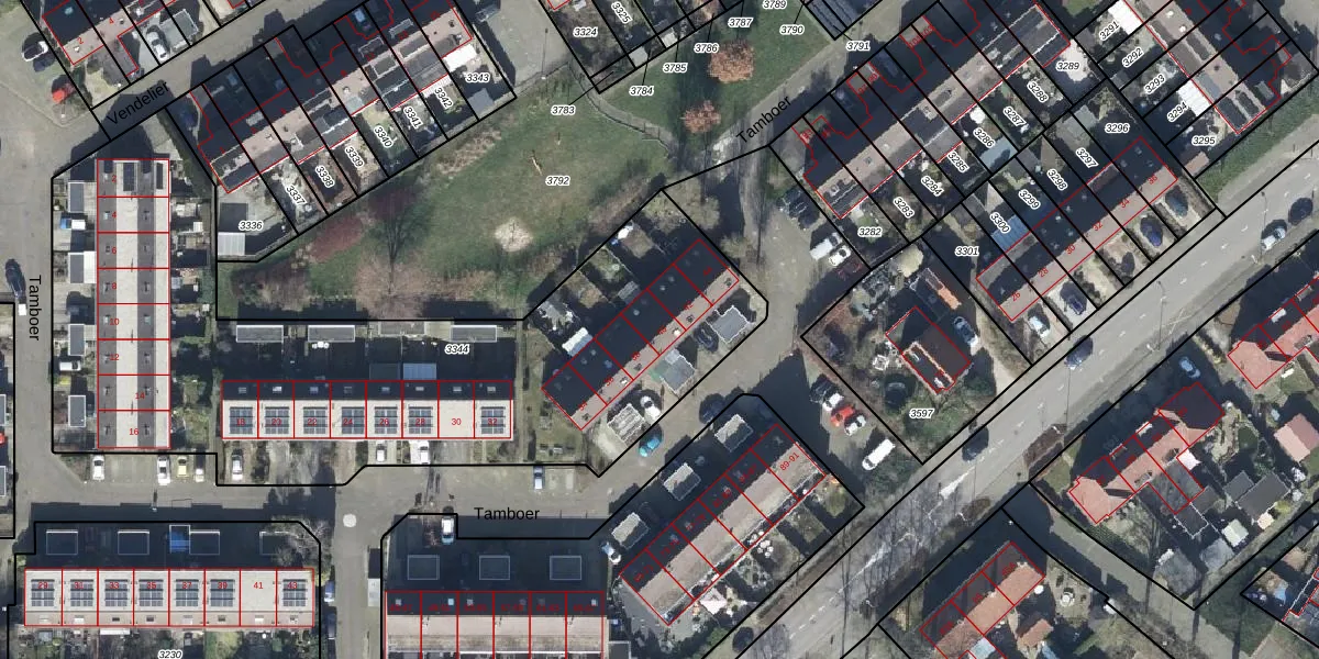 Het perceel waarop Tamboer 40 staat heeft een oppervlakte van 3199 m². Dit is een zeer groot perceel. De perceeloppervlakte wordt geregistreerd door het Kadaster. Gedetailleerde informatie over de maten van dit perceel kunt u vinden in het rapport Kadastrale kaart met maatvoering van Tamboer 40.