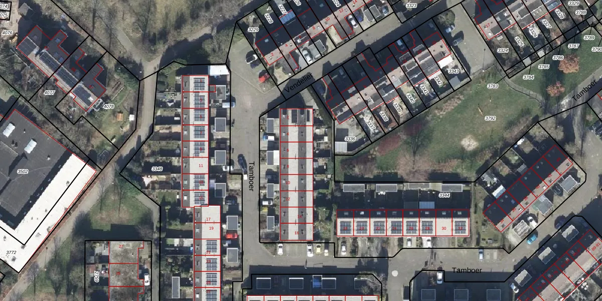 Het perceel waarop Tamboer 6 staat heeft een oppervlakte van 3199 m². Dit is een zeer groot perceel. De perceeloppervlakte wordt geregistreerd door het Kadaster. Gedetailleerde informatie over de maten van dit perceel kunt u vinden in het rapport Kadastrale kaart met maatvoering van Tamboer 6.