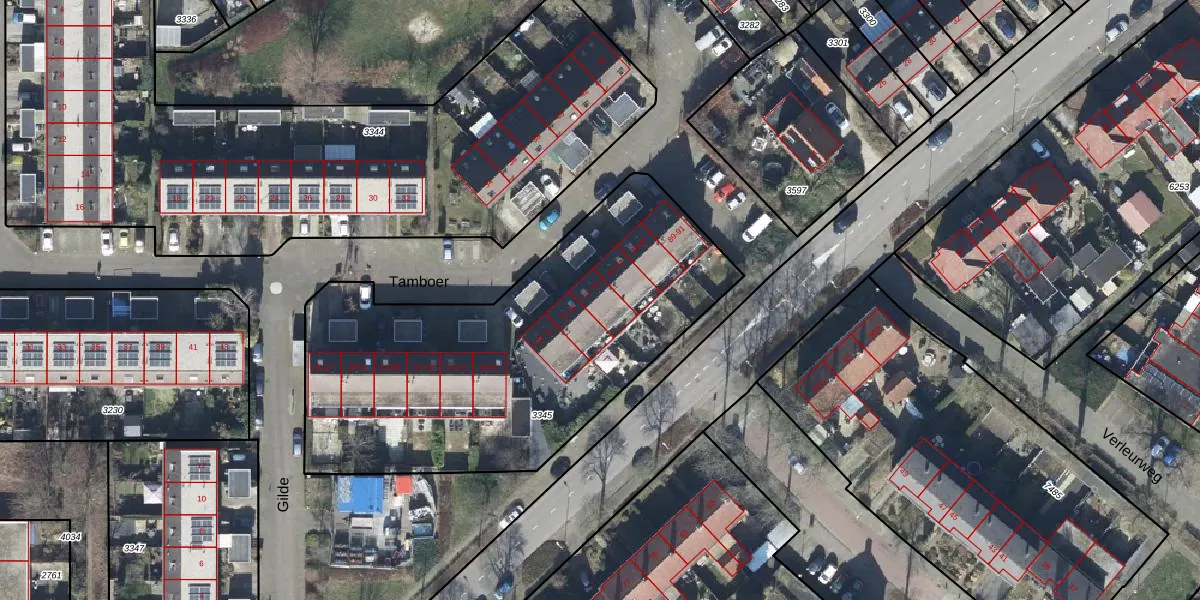 Het perceel waarop Tamboer 77 staat heeft een oppervlakte van 2037 m². Dit is een zeer groot perceel. De perceeloppervlakte wordt geregistreerd door het Kadaster. Gedetailleerde informatie over de maten van dit perceel kunt u vinden in het rapport Kadastrale kaart met maatvoering van Tamboer 77.