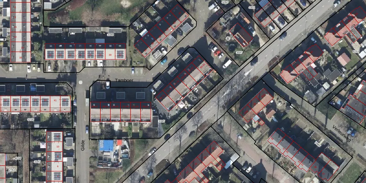 Het perceel waarop Tamboer 79 staat heeft een oppervlakte van 2037 m². Dit is een zeer groot perceel. De perceeloppervlakte wordt geregistreerd door het Kadaster. Gedetailleerde informatie over de maten van dit perceel kunt u vinden in het rapport Kadastrale kaart met maatvoering van Tamboer 79.