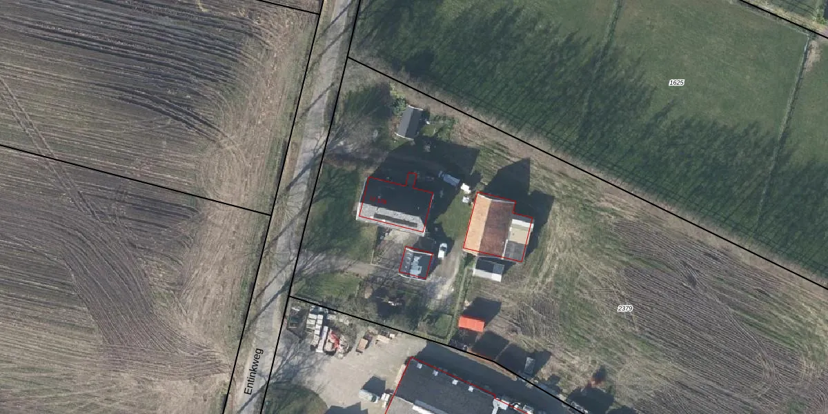Het perceel waarop Entinkweg 12-B staat heeft een oppervlakte van 7722 m². Dit is een zeer groot perceel. De perceeloppervlakte wordt geregistreerd door het Kadaster. Gedetailleerde informatie over de maten van dit perceel kunt u vinden in het rapport Kadastrale kaart met maatvoering van Entinkweg 12-B.