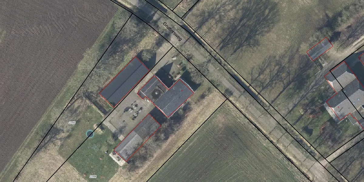 Het perceel waarop Gruttersweg 2 staat heeft een oppervlakte van 5930 m². Dit is een zeer groot perceel. De perceeloppervlakte wordt geregistreerd door het Kadaster. Gedetailleerde informatie over de maten van dit perceel kunt u vinden in het rapport Kadastrale kaart met maatvoering van Gruttersweg 2.