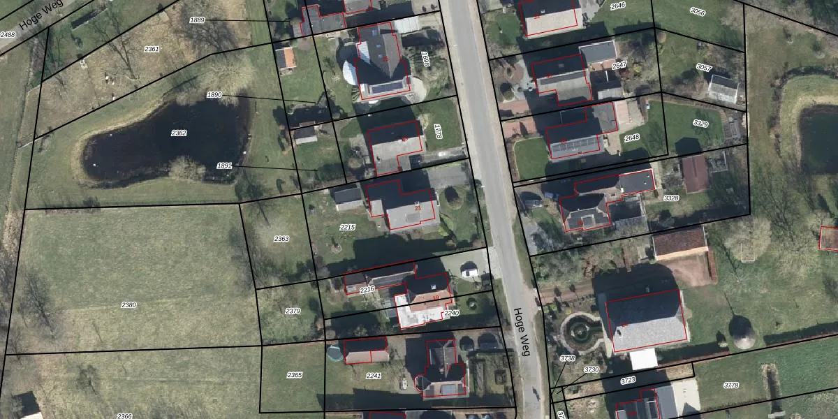 Hoge Weg 21 is gelegen op kadastraal perceel VSV00G2215. Deze kadastrale aanduiding is uniek en wordt gebruikt door het Kadaster om eigendomsrechten en andere zakelijke rechten vast te leggen. Het perceel maakt onderdeel uit van de kadastrale gemeente Varsseveld.