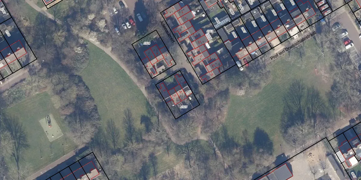 Het perceel waarop Adenauererf 14 staat heeft een oppervlakte van 344 m². Dit is een groot perceel. De perceeloppervlakte wordt geregistreerd door het Kadaster. Gedetailleerde informatie over de maten van dit perceel kunt u vinden in het rapport Kadastrale kaart met maatvoering van Adenauererf 14.