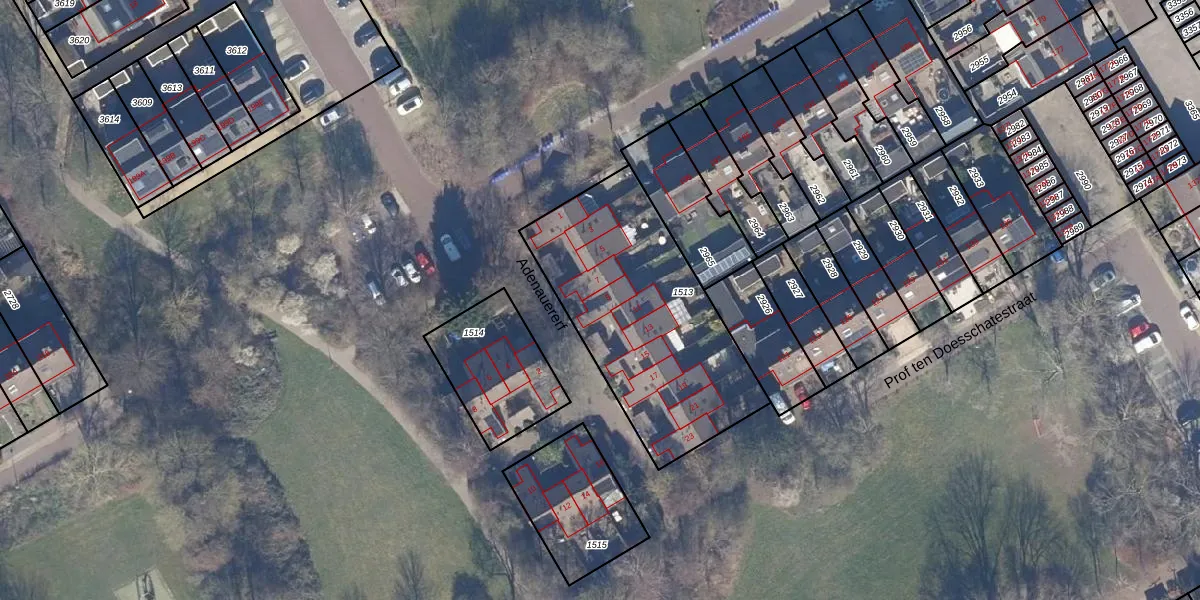 Het perceel waarop Adenauererf 9 staat heeft een oppervlakte van 990 m². Dit is een groot perceel. De perceeloppervlakte wordt geregistreerd door het Kadaster. Gedetailleerde informatie over de maten van dit perceel kunt u vinden in het rapport Kadastrale kaart met maatvoering van Adenauererf 9.