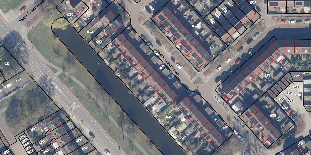 Het perceel waarop Aletta Jacobsstraat 57 staat heeft een oppervlakte van 2820 m². Dit is een zeer groot perceel. De perceeloppervlakte wordt geregistreerd door het Kadaster. Gedetailleerde informatie over de maten van dit perceel kunt u vinden in het rapport Kadastrale kaart met maatvoering van Aletta Jacobsstraat 57.