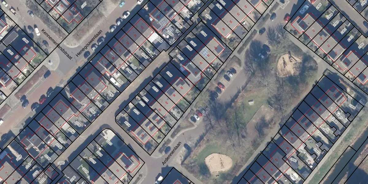 Gebruik de zoekbalk of klik op een perceel voor informatie over de adressen binnen dit perceel.