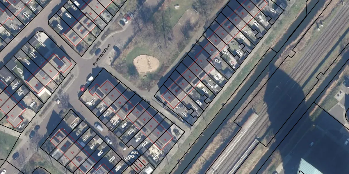 Het perceel waarop Ardennenlaan 39 staat heeft een oppervlakte van 156 m². Dit is een middelgroot perceel. De perceeloppervlakte wordt geregistreerd door het Kadaster. Gedetailleerde informatie over de maten van dit perceel kunt u vinden in het rapport Kadastrale kaart met maatvoering van Ardennenlaan 39.