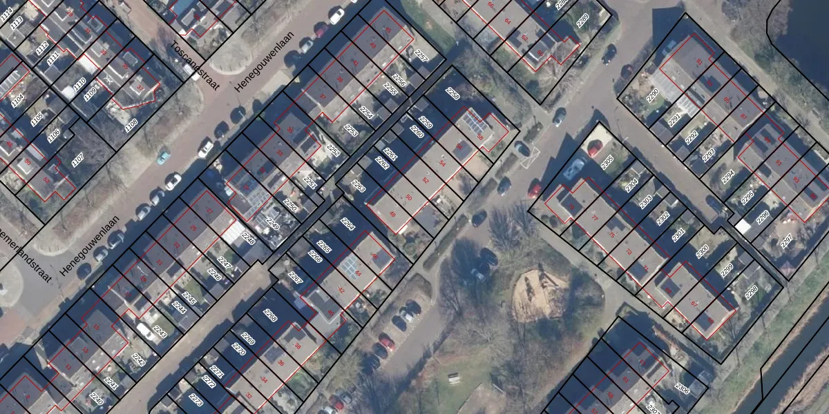 Gebruik de zoekbalk of klik op een perceel voor informatie over de adressen binnen dit perceel.