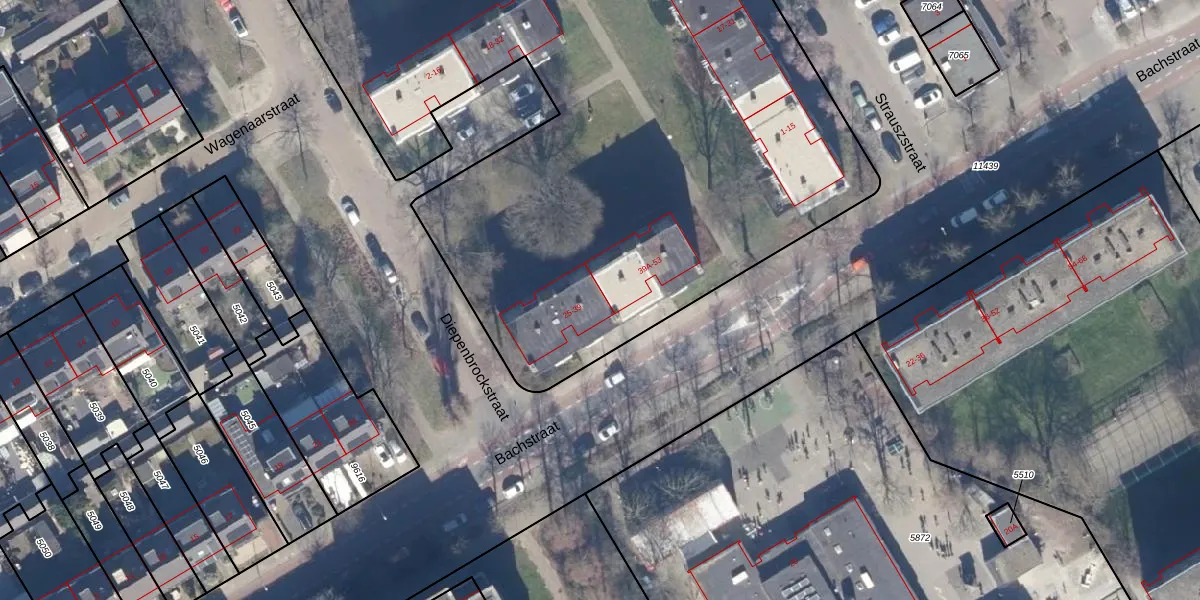 Het perceel waarop Bachstraat 37 staat heeft een oppervlakte van 7035 m². Dit is een zeer groot perceel. De perceeloppervlakte wordt geregistreerd door het Kadaster. Gedetailleerde informatie over de maten van dit perceel kunt u vinden in het rapport Kadastrale kaart met maatvoering van Bachstraat 37.