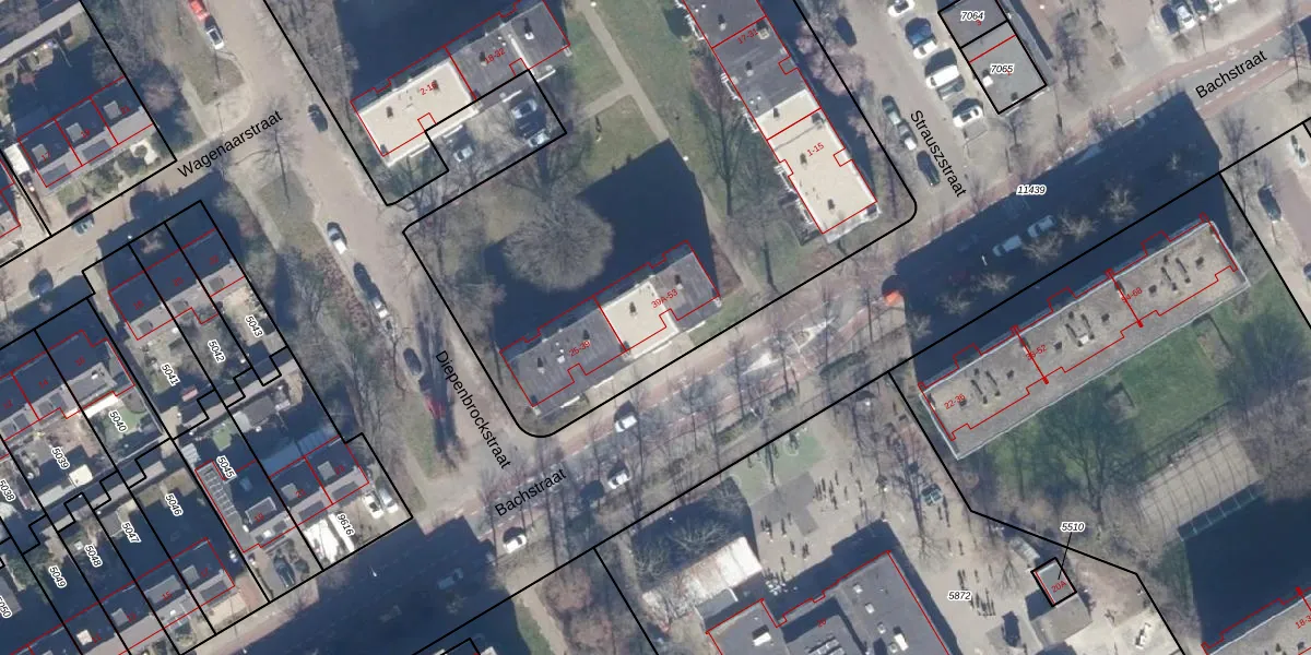 Het perceel waarop Bachstraat 39-A staat heeft een oppervlakte van 7035 m². Dit is een zeer groot perceel. De perceeloppervlakte wordt geregistreerd door het Kadaster. Gedetailleerde informatie over de maten van dit perceel kunt u vinden in het rapport Kadastrale kaart met maatvoering van Bachstraat 39-A.