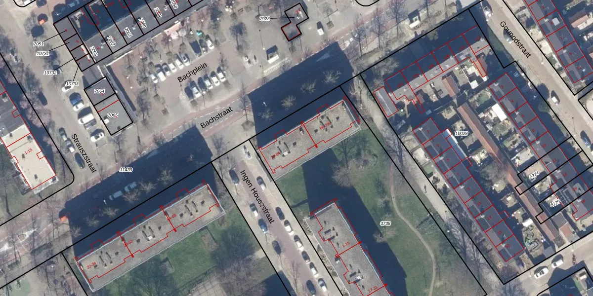 Het perceel waarop Bachstraat 80 staat heeft een oppervlakte van 3358 m². Dit is een zeer groot perceel. De perceeloppervlakte wordt geregistreerd door het Kadaster. Gedetailleerde informatie over de maten van dit perceel kunt u vinden in het rapport Kadastrale kaart met maatvoering van Bachstraat 80.