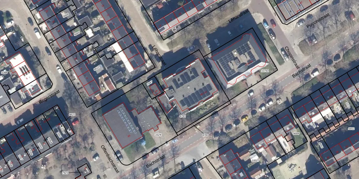 Het perceel waarop Bachstraat 91 staat heeft een oppervlakte van 1095 m². Dit is een zeer groot perceel. De perceeloppervlakte wordt geregistreerd door het Kadaster. Gedetailleerde informatie over de maten van dit perceel kunt u vinden in het rapport Kadastrale kaart met maatvoering van Bachstraat 91.