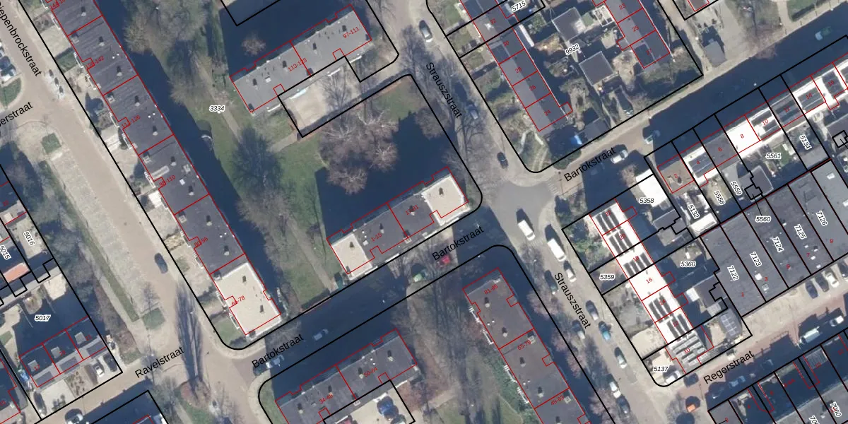 Het perceel waarop Bartokstraat 27 staat heeft een oppervlakte van 6530 m². Dit is een zeer groot perceel. De perceeloppervlakte wordt geregistreerd door het Kadaster. Gedetailleerde informatie over de maten van dit perceel kunt u vinden in het rapport Kadastrale kaart met maatvoering van Bartokstraat 27.