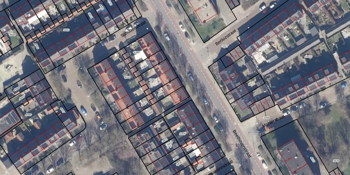 Gebruik de zoekbalk of klik op een perceel voor informatie over de adressen binnen dit perceel.
