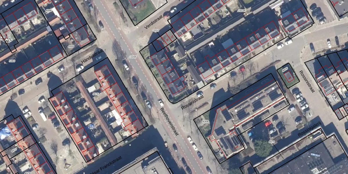 Het perceel waarop Beethovenstraat 2 staat heeft een oppervlakte van 4080 m². Dit is een zeer groot perceel. De perceeloppervlakte wordt geregistreerd door het Kadaster. Gedetailleerde informatie over de maten van dit perceel kunt u vinden in het rapport Kadastrale kaart met maatvoering van Beethovenstraat 2.