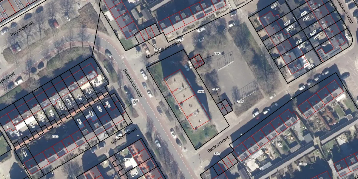 Het perceel waarop Beethovenstraat 58 staat heeft een oppervlakte van 1190 m². Dit is een zeer groot perceel. De perceeloppervlakte wordt geregistreerd door het Kadaster. Gedetailleerde informatie over de maten van dit perceel kunt u vinden in het rapport Kadastrale kaart met maatvoering van Beethovenstraat 58.