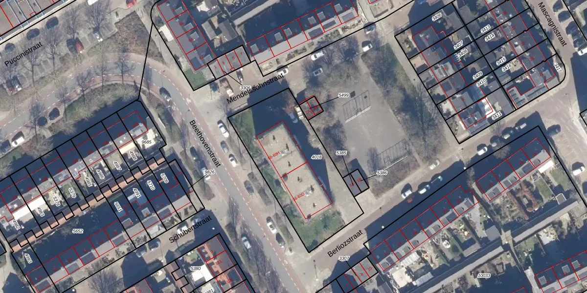 Het perceel waarop Beethovenstraat 60-E staat heeft een oppervlakte van 1190 m². Dit is een zeer groot perceel. De perceeloppervlakte wordt geregistreerd door het Kadaster. Gedetailleerde informatie over de maten van dit perceel kunt u vinden in het rapport Kadastrale kaart met maatvoering van Beethovenstraat 60-E.