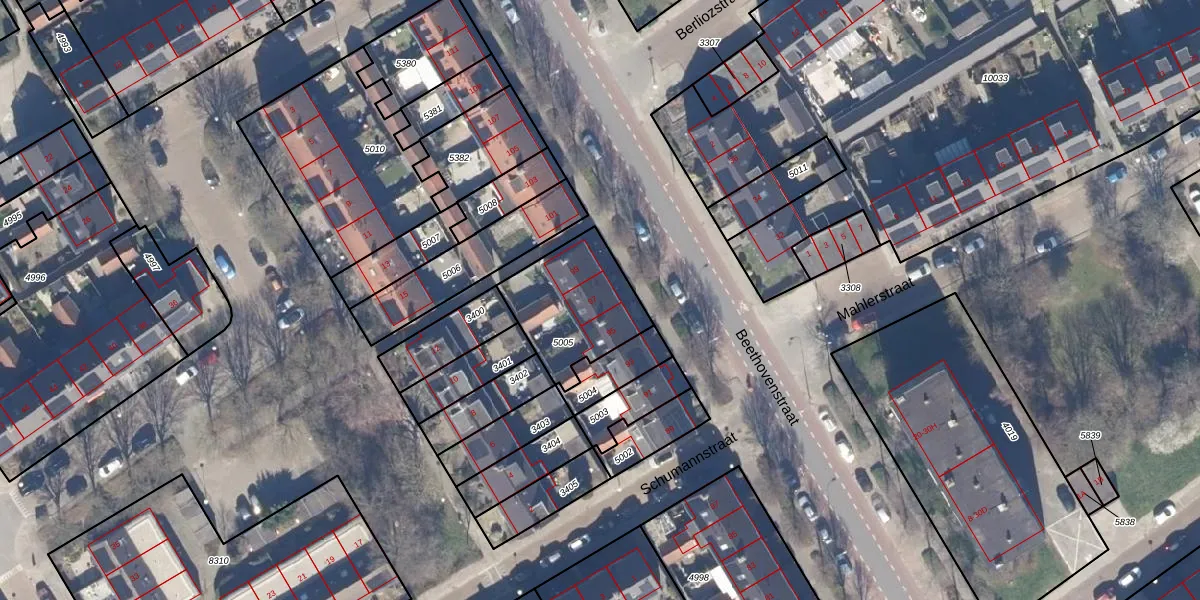 Het perceel waarop Beethovenstraat 97 staat heeft een oppervlakte van 371 m². Dit is een groot perceel. De perceeloppervlakte wordt geregistreerd door het Kadaster. Gedetailleerde informatie over de maten van dit perceel kunt u vinden in het rapport Kadastrale kaart met maatvoering van Beethovenstraat 97.
