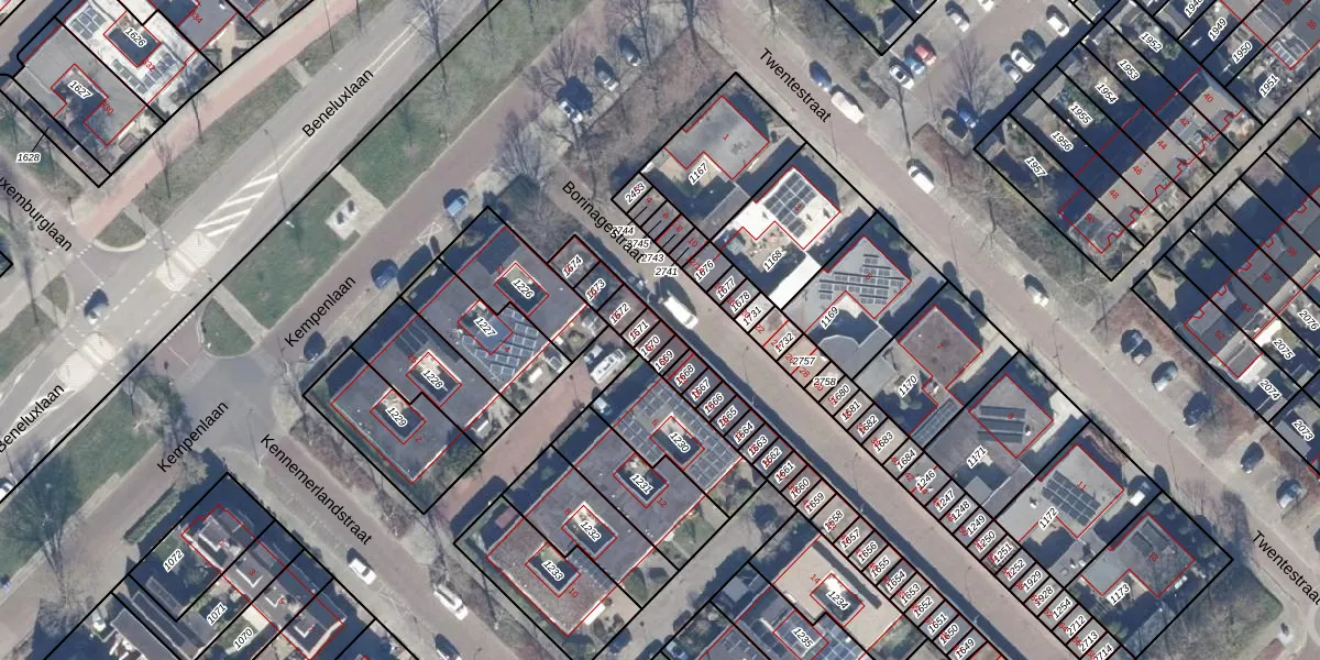 Gebruik de zoekbalk of klik op een perceel voor informatie over de adressen binnen dit perceel.