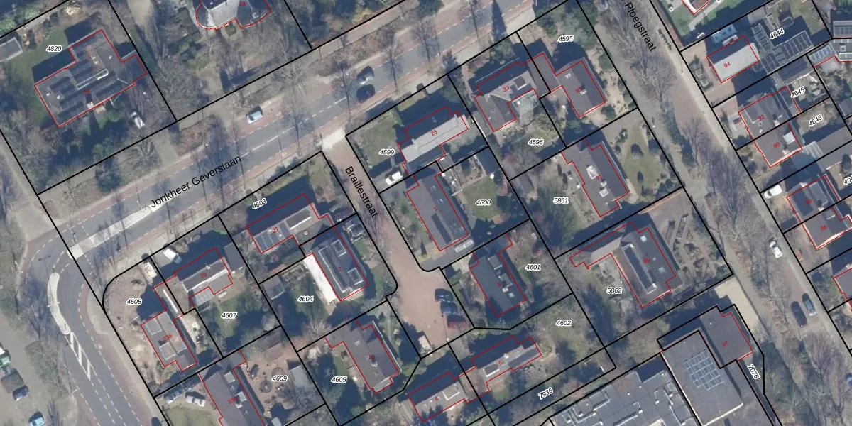 Braillestraat 1 is gelegen op kadastraal perceel HKK01D4600. Deze kadastrale aanduiding is uniek en wordt gebruikt door het Kadaster om eigendomsrechten en andere zakelijke rechten vast te leggen. Het perceel maakt onderdeel uit van de kadastrale gemeente Heemskerk.