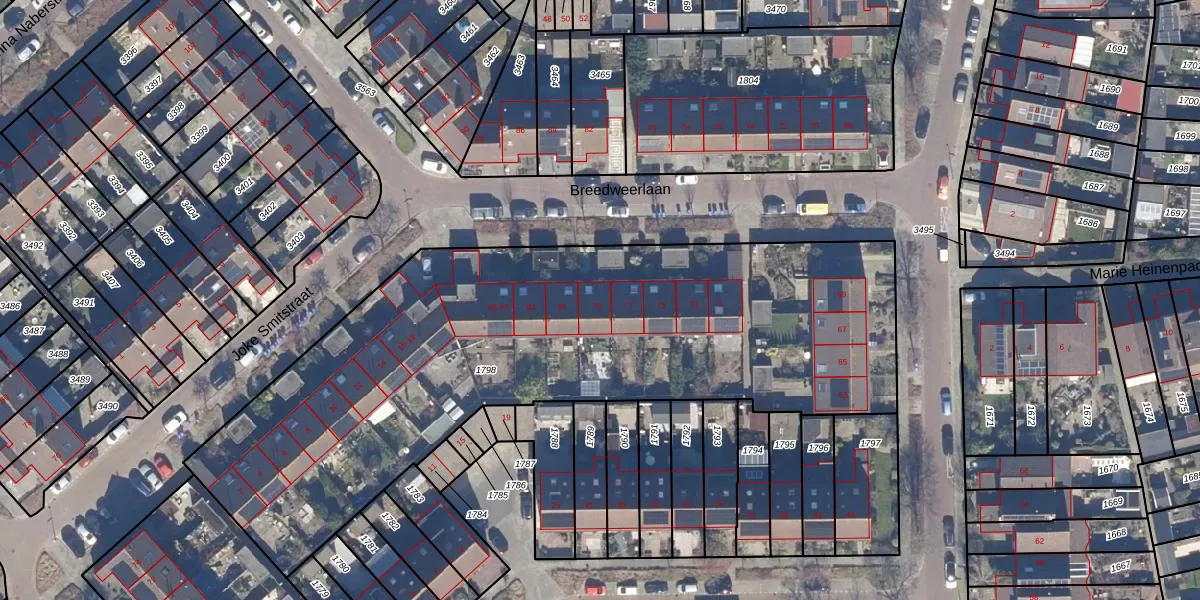 Het perceel waarop Breedweerlaan 79 staat heeft een oppervlakte van 3245 m². Dit is een zeer groot perceel. De perceeloppervlakte wordt geregistreerd door het Kadaster. Gedetailleerde informatie over de maten van dit perceel kunt u vinden in het rapport Kadastrale kaart met maatvoering van Breedweerlaan 79.