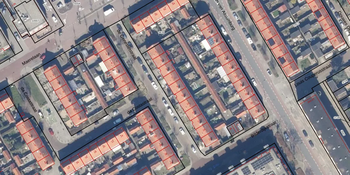 Het perceel waarop de Genestetstraat 9 staat heeft een oppervlakte van 3010 m². Dit is een zeer groot perceel. De perceeloppervlakte wordt geregistreerd door het Kadaster. Gedetailleerde informatie over de maten van dit perceel kunt u vinden in het rapport Kadastrale kaart met maatvoering van de Genestetstraat 9.