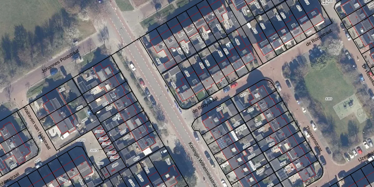Het perceel waarop de Rooystraat 1 staat heeft een oppervlakte van 239 m². Dit is een middelgroot perceel. De perceeloppervlakte wordt geregistreerd door het Kadaster. Gedetailleerde informatie over de maten van dit perceel kunt u vinden in het rapport Kadastrale kaart met maatvoering van de Rooystraat 1.