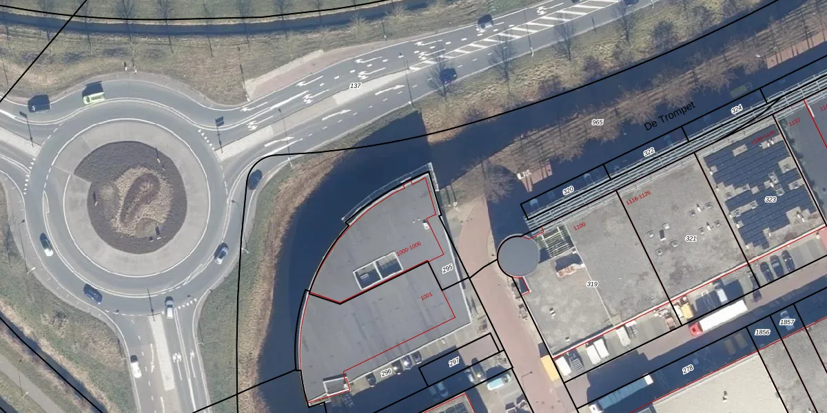 Het perceel waarop De Trompet 1006 staat heeft een oppervlakte van 635 m². Dit is een groot perceel. De perceeloppervlakte wordt geregistreerd door het Kadaster. Gedetailleerde informatie over de maten van dit perceel kunt u vinden in het rapport Kadastrale kaart met maatvoering van De Trompet 1006.