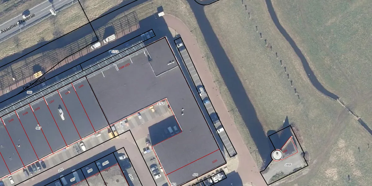 Het perceel waarop De Trompet 1209 staat heeft een oppervlakte van 3255 m². Dit is een zeer groot perceel. De perceeloppervlakte wordt geregistreerd door het Kadaster. Gedetailleerde informatie over de maten van dit perceel kunt u vinden in het rapport Kadastrale kaart met maatvoering van De Trompet 1209.