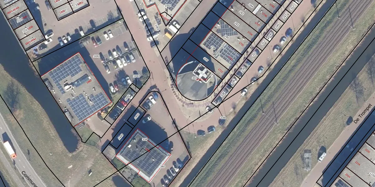 Het perceel waarop De Trompet 1701 staat heeft een oppervlakte van 475 m². Dit is een groot perceel. De perceeloppervlakte wordt geregistreerd door het Kadaster. Gedetailleerde informatie over de maten van dit perceel kunt u vinden in het rapport Kadastrale kaart met maatvoering van De Trompet 1701.