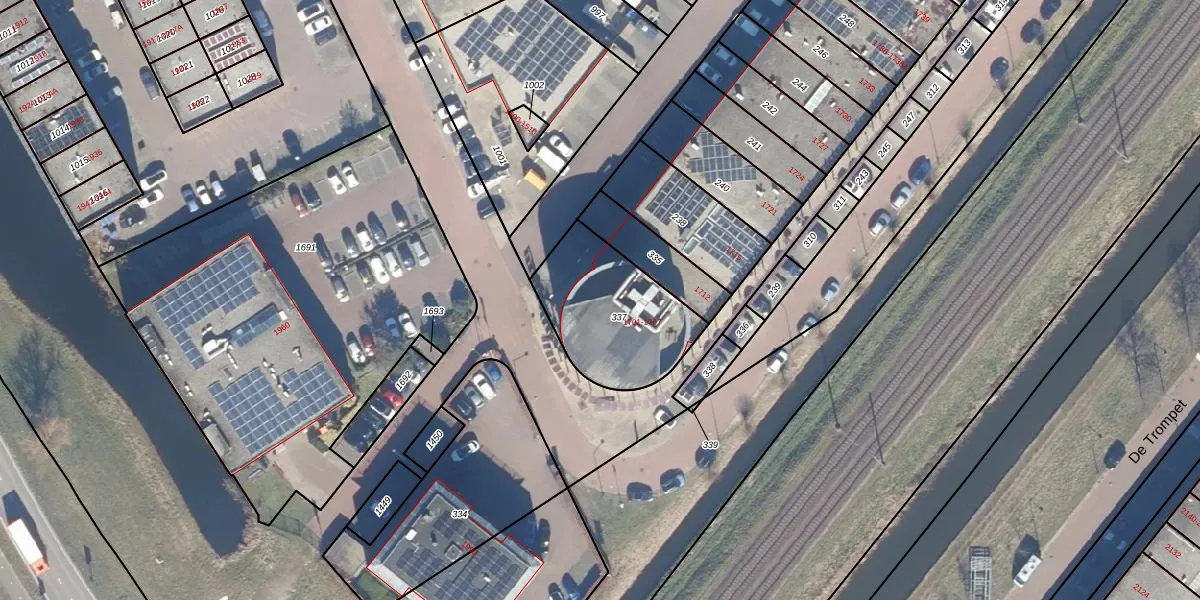Het perceel waarop De Trompet 1707 staat heeft een oppervlakte van 475 m². Dit is een groot perceel. De perceeloppervlakte wordt geregistreerd door het Kadaster. Gedetailleerde informatie over de maten van dit perceel kunt u vinden in het rapport Kadastrale kaart met maatvoering van De Trompet 1707.