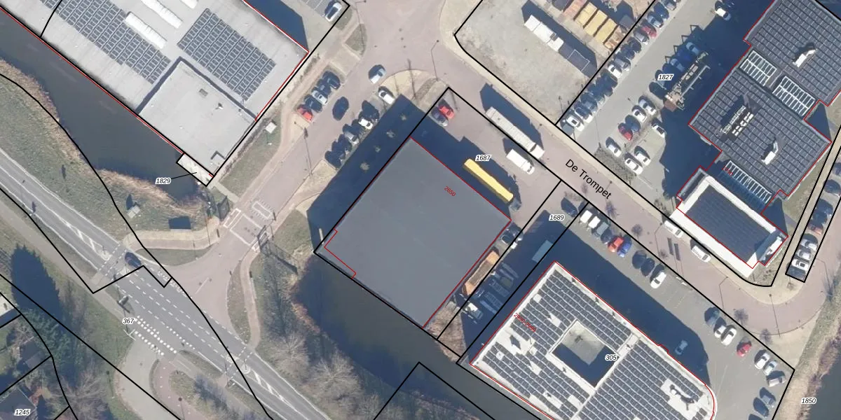 Het perceel waarop De Trompet 2650 staat heeft een oppervlakte van 1742 m². Dit is een zeer groot perceel. De perceeloppervlakte wordt geregistreerd door het Kadaster. Gedetailleerde informatie over de maten van dit perceel kunt u vinden in het rapport Kadastrale kaart met maatvoering van De Trompet 2650.