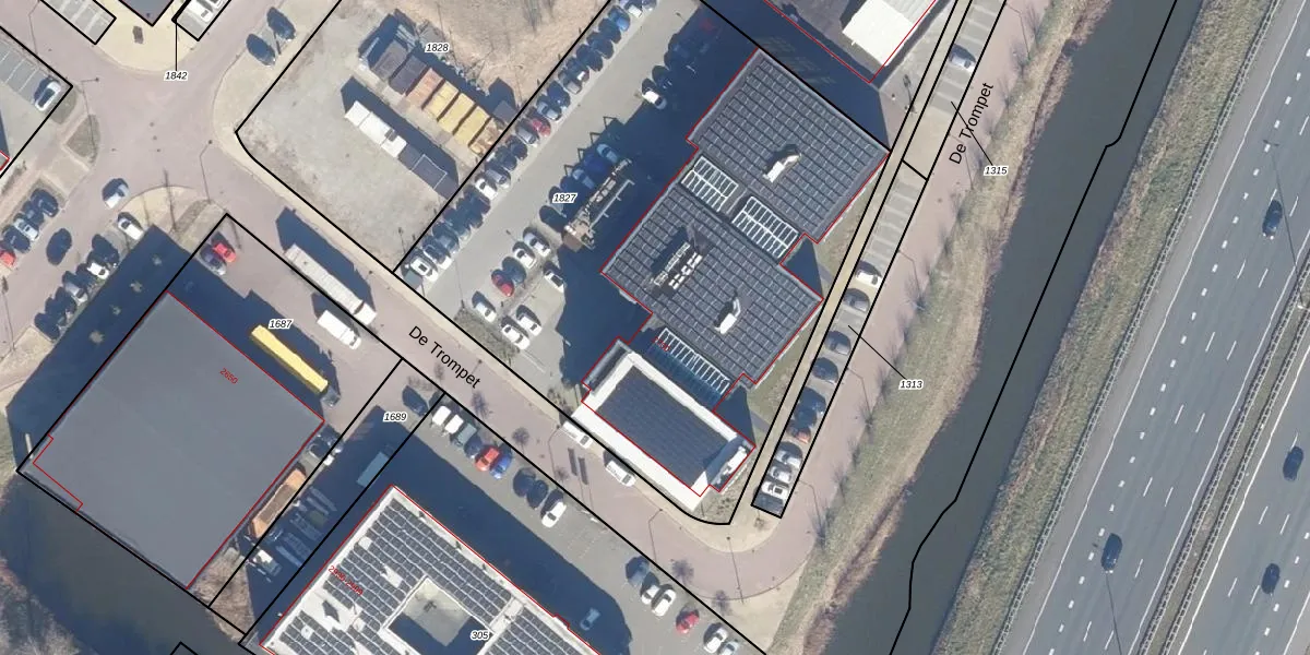 Het perceel waarop De Trompet 2700 staat heeft een oppervlakte van 3510 m². Dit is een zeer groot perceel. De perceeloppervlakte wordt geregistreerd door het Kadaster. Gedetailleerde informatie over de maten van dit perceel kunt u vinden in het rapport Kadastrale kaart met maatvoering van De Trompet 2700.