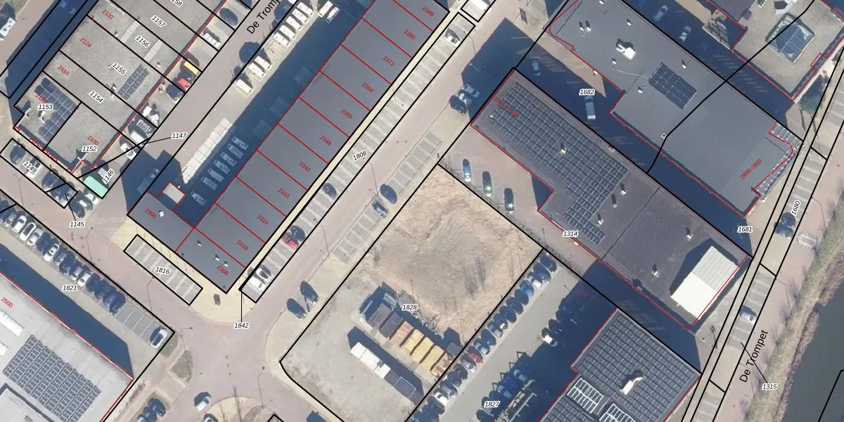 Het perceel waarop De Trompet 2756 staat heeft een oppervlakte van 1985 m². Dit is een zeer groot perceel. De perceeloppervlakte wordt geregistreerd door het Kadaster. Gedetailleerde informatie over de maten van dit perceel kunt u vinden in het rapport Kadastrale kaart met maatvoering van De Trompet 2756.