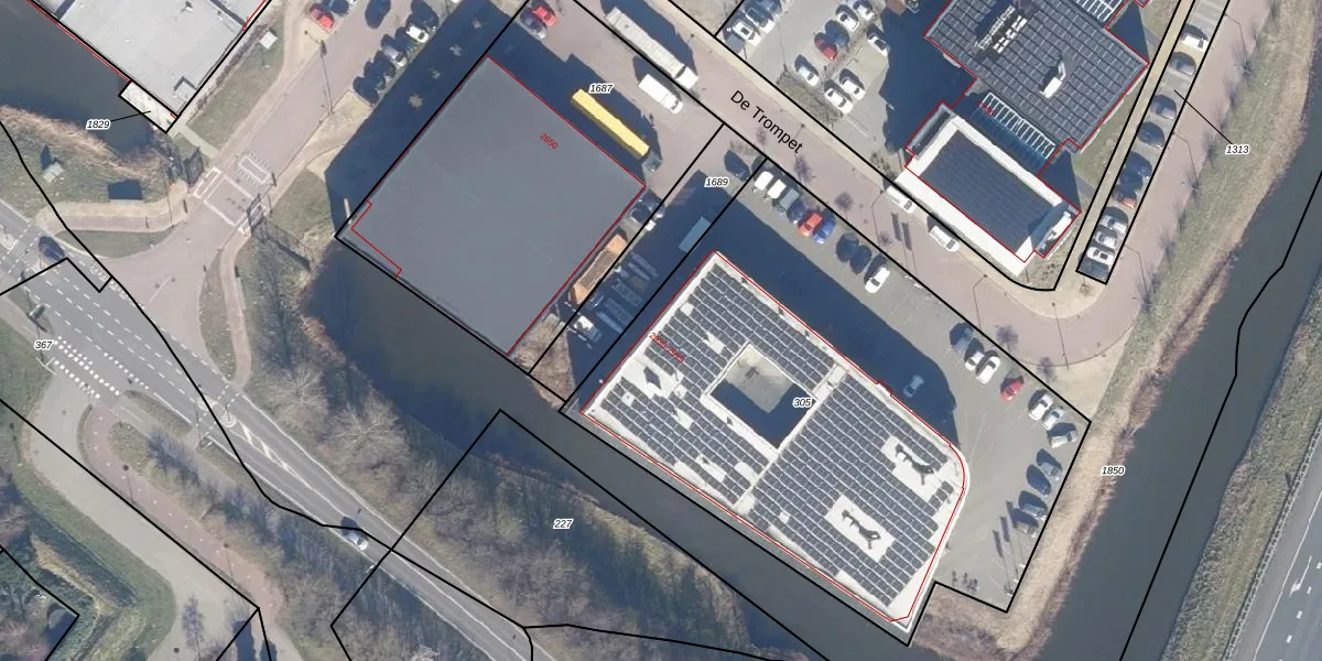 Het perceel waarop De Trompet 2970 staat heeft een oppervlakte van 3075 m². Dit is een zeer groot perceel. De perceeloppervlakte wordt geregistreerd door het Kadaster. Gedetailleerde informatie over de maten van dit perceel kunt u vinden in het rapport Kadastrale kaart met maatvoering van De Trompet 2970.