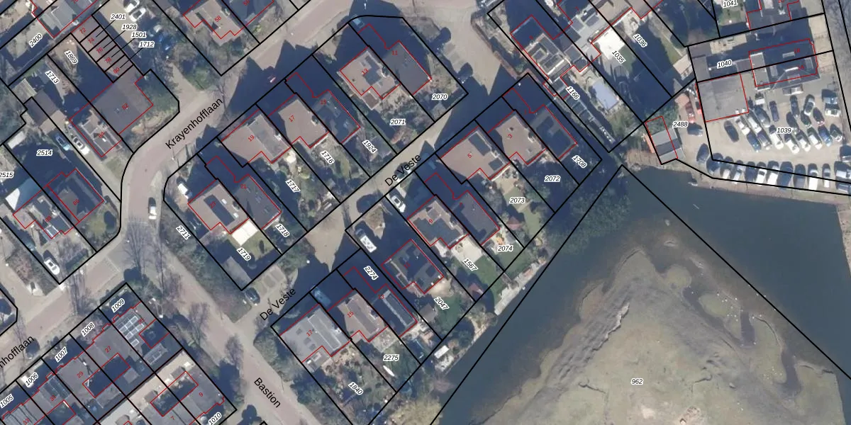 Het perceel waarop De Veste 9 staat heeft een oppervlakte van 316 m². Dit is een groot perceel. De perceeloppervlakte wordt geregistreerd door het Kadaster. Gedetailleerde informatie over de maten van dit perceel kunt u vinden in het rapport Kadastrale kaart met maatvoering van De Veste 9.